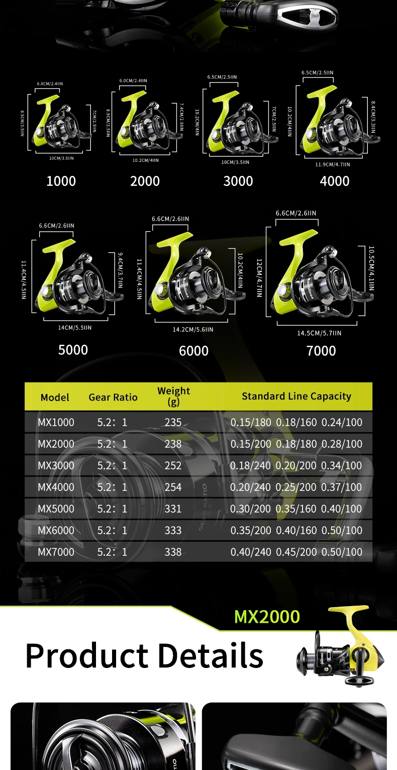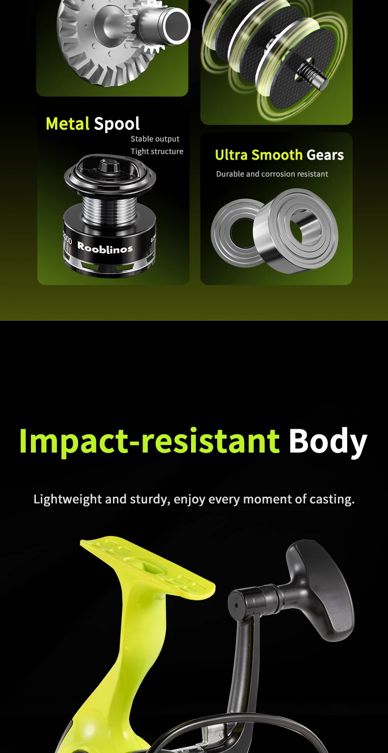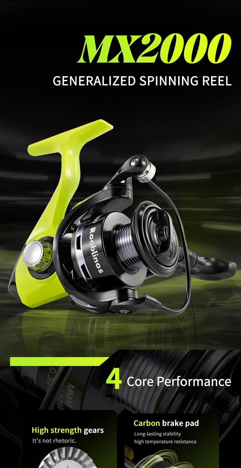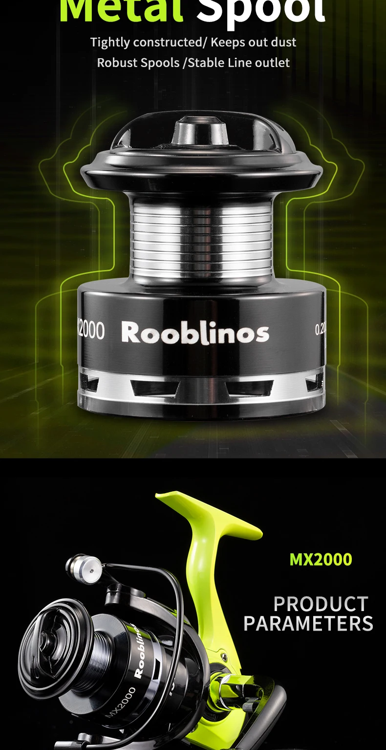 Rooblinos MX Spinning Fishing Reel 5.2:1 Gear Ratio 2+1BB Lightweight Smooth Drag Anti-Reverse for Saltwater Freshwater